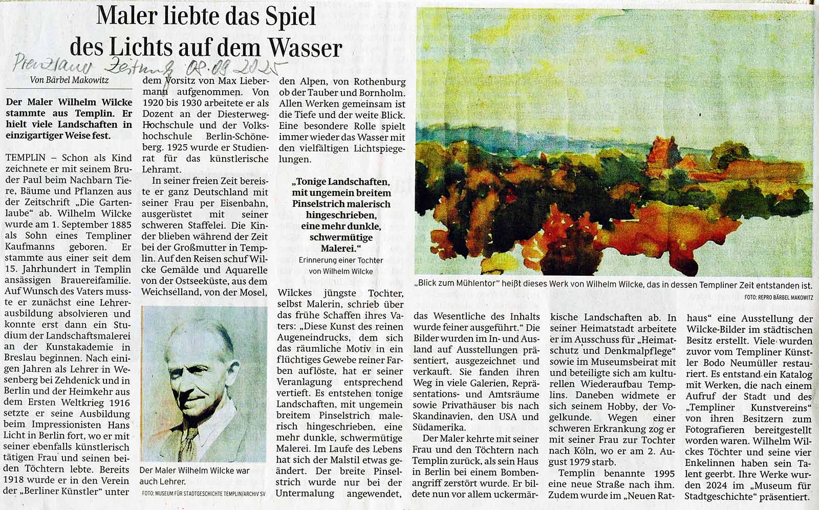 • Wilhelm Wilcke, ein Maler in der Uckermark 07.11.2025