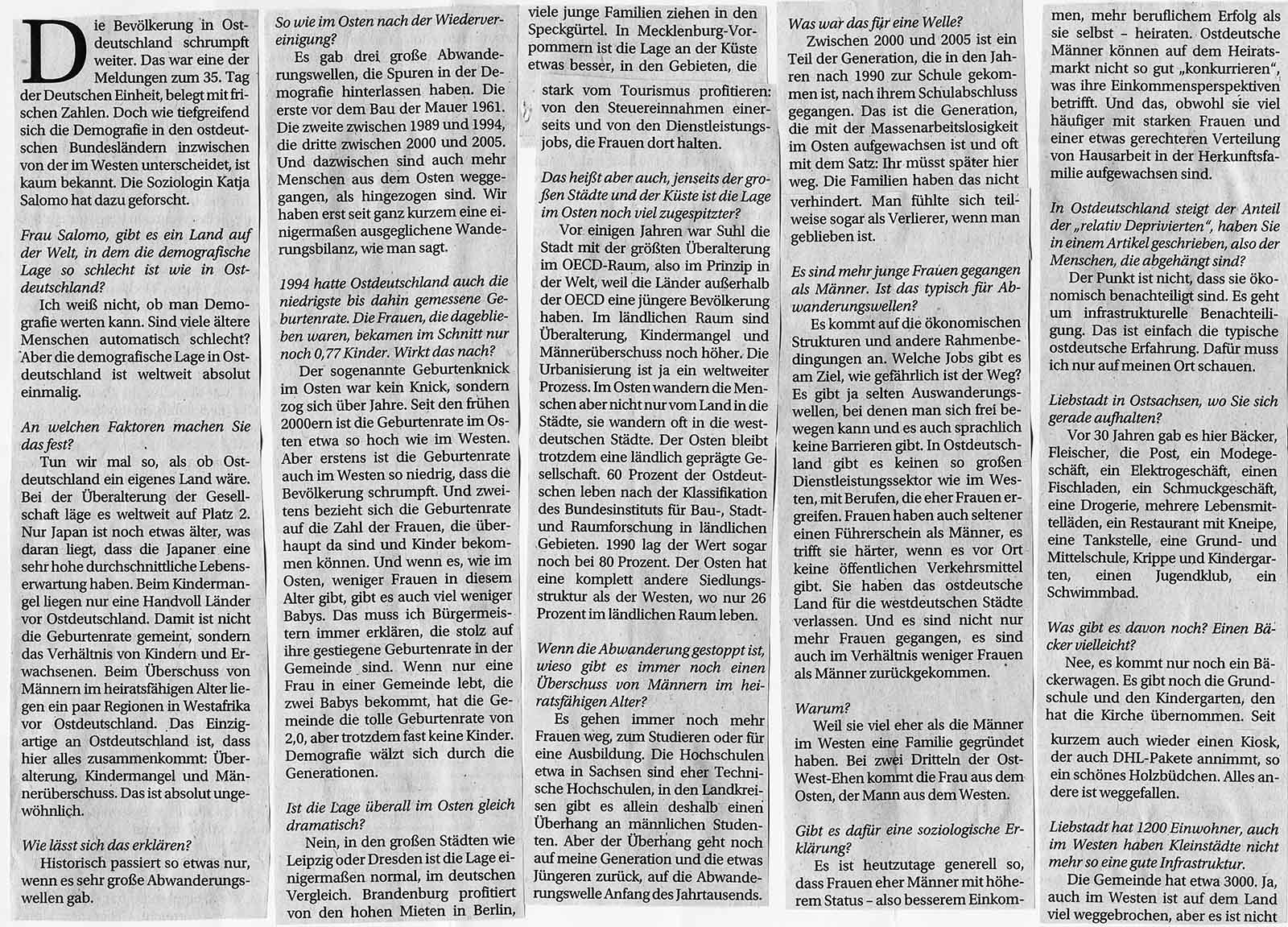Interview mit Katja Salomo über die dramatische demografische Situation im Osten Deutschlands Foto: Jabs