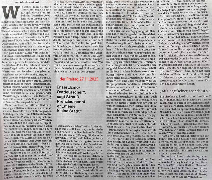 Noch mal zur Lesung von Simon Strauß in Prenzlau