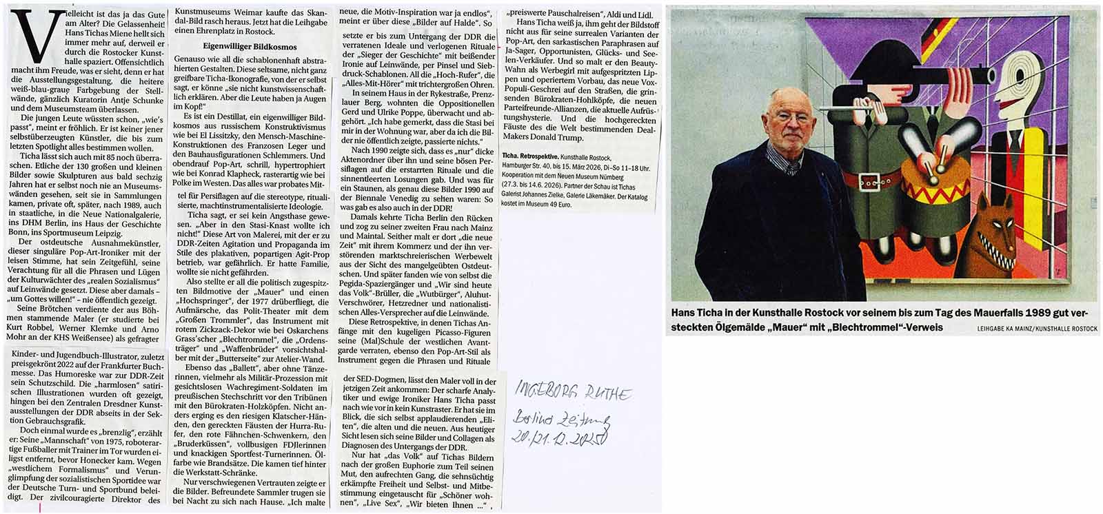 Ausstellung zum 85. Geburtstag von Hans Ticha Foto: Jabs ttps://www.ardmediathek.de/video/ttt-titel-thesen-temperamente/der-warhol-des-ostens-ausstellung-zum-85-geburtstag-von-hans-ticha/ard/Y3JpZDovL2Rhc2Vyc3RlLmRlL3R0dCAtIHRpdGVsIHRoZXNlbiB0ZW1wZXJhbWVudGUvMDcwNGRkM2EtNTMyOC00ZWQ2LWE2ZTYtYzM5NzliOGZmNWU3